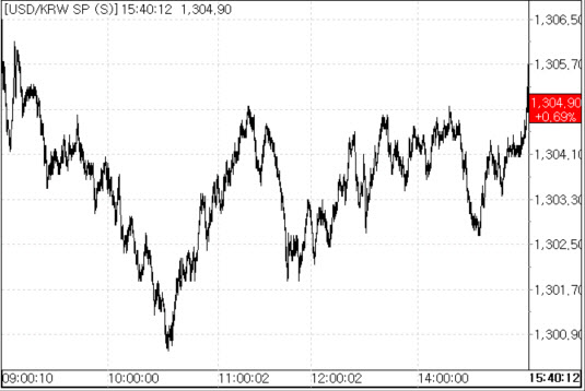 이날 환율은 8원 이상 오른 역외 환율을 반영해 전 거래일 종가보다 10.3원 오른 1306.2원에 개장했다. 장중 고가 기준 지난해 12월18일(1311.9원) 이후 최고 수준으로, 올해 고점인 지난 17일(1303.8원) 최고치도 경신했다. 이후 환율은 상승 폭을 유지하며 1300원 중반 선에서 등락했다.